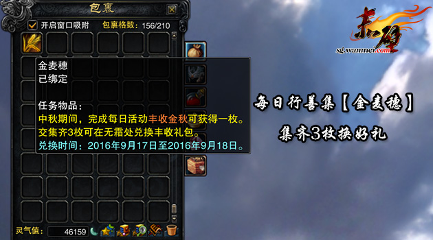 注意:收获【金麦穗】的时间为:9月15日至9月17日;